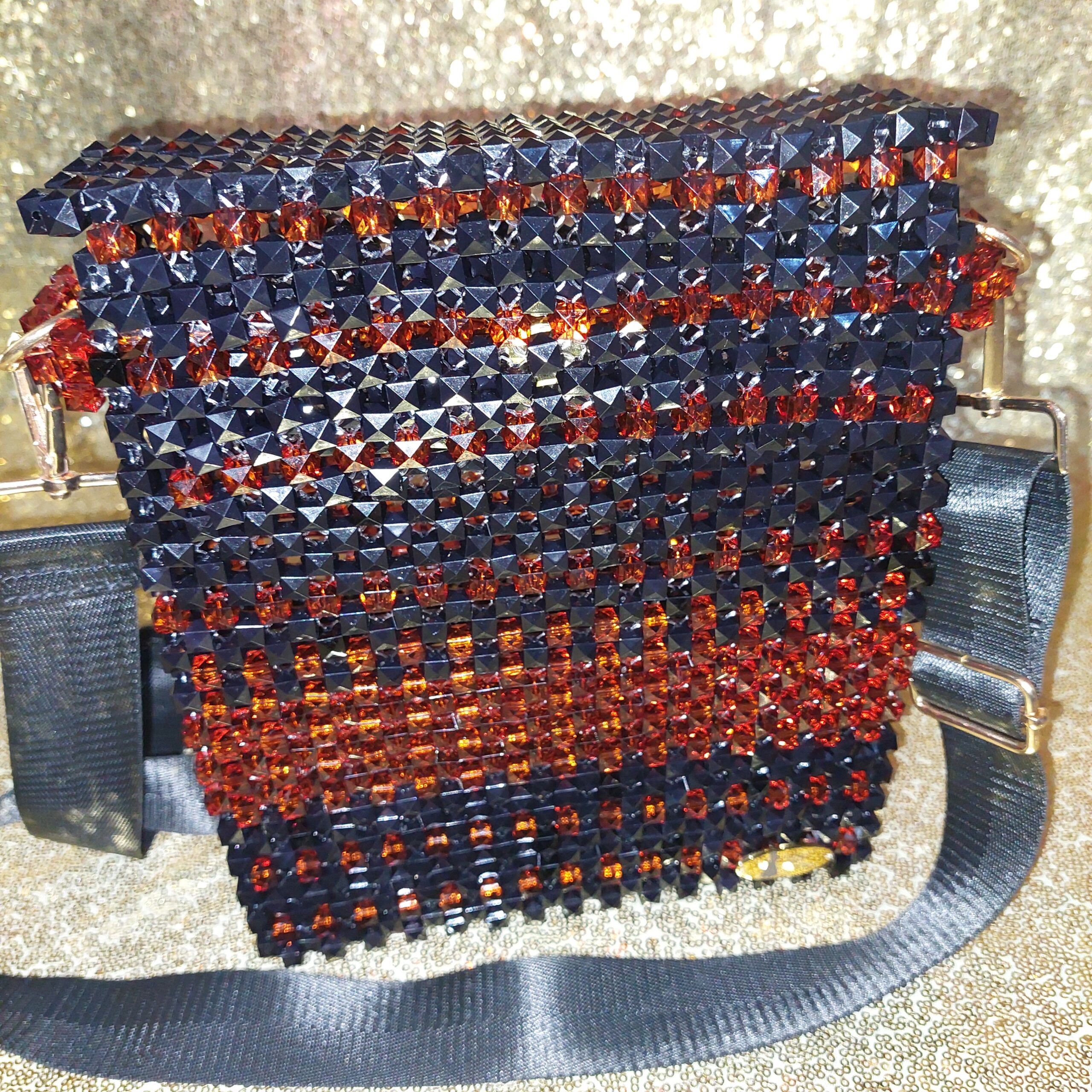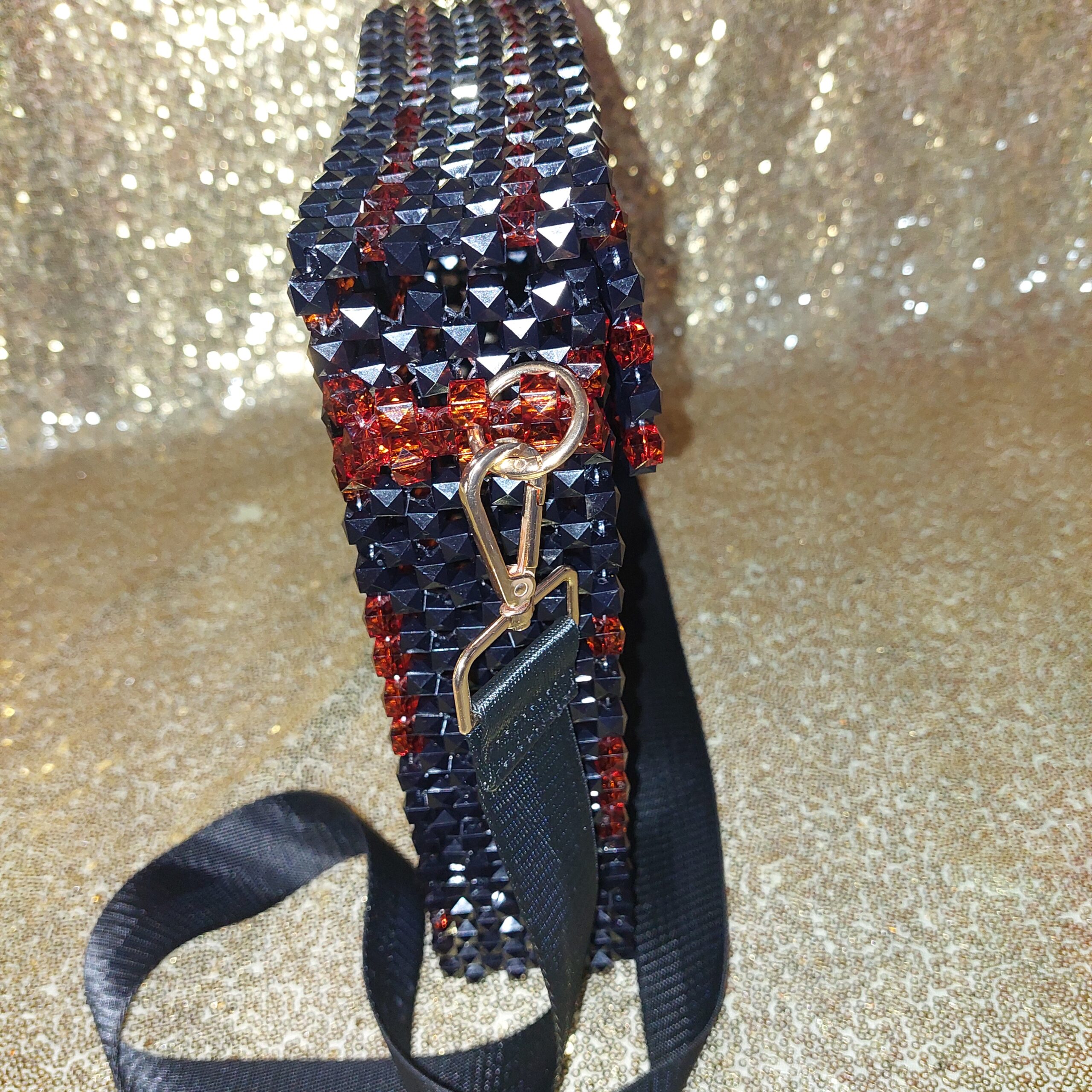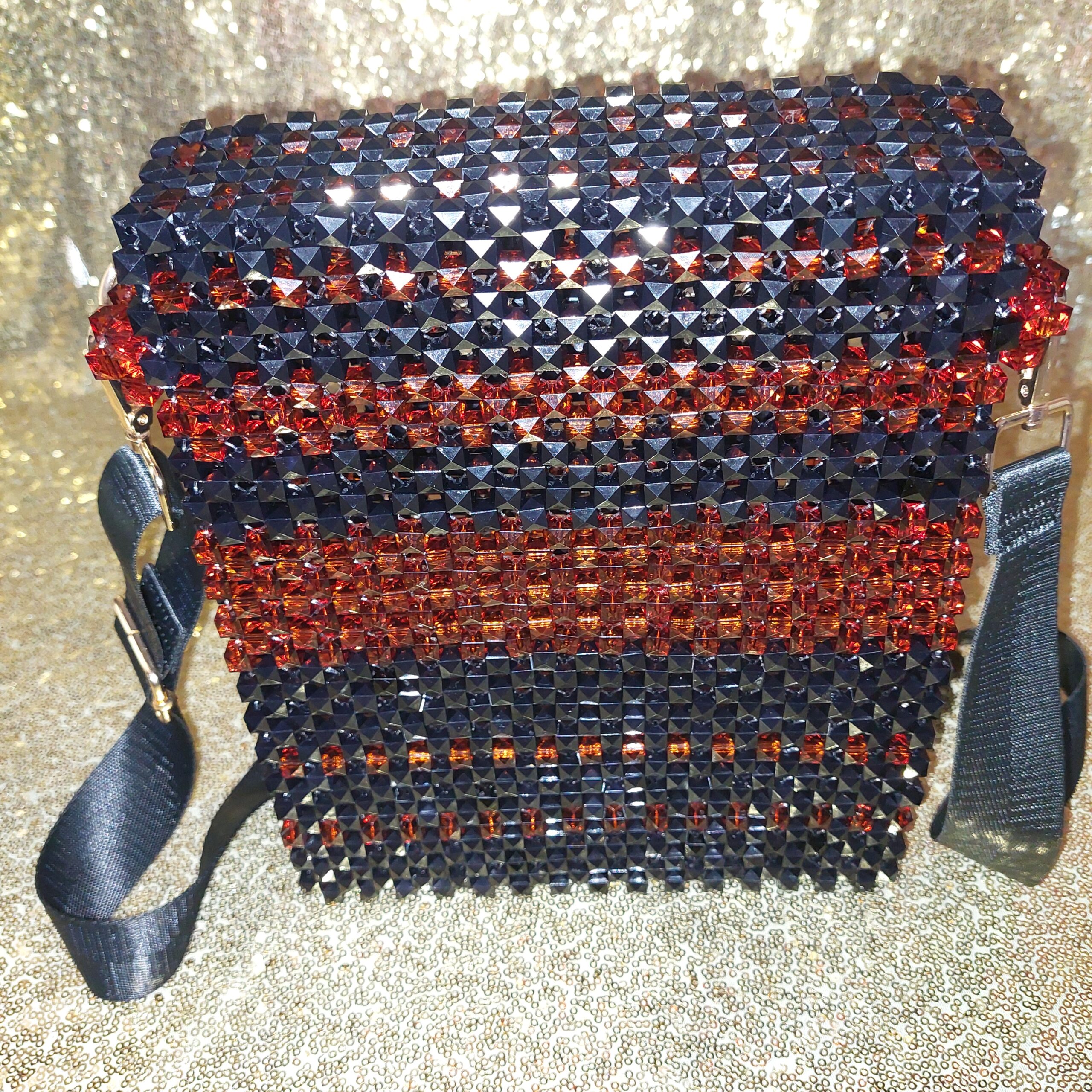 This handbag was made with a robust durable nylon beading cord and 10mm opaque beads with an all-in-one carry handle. This bag is suitable for all occasions and an excellent accessory for all events.